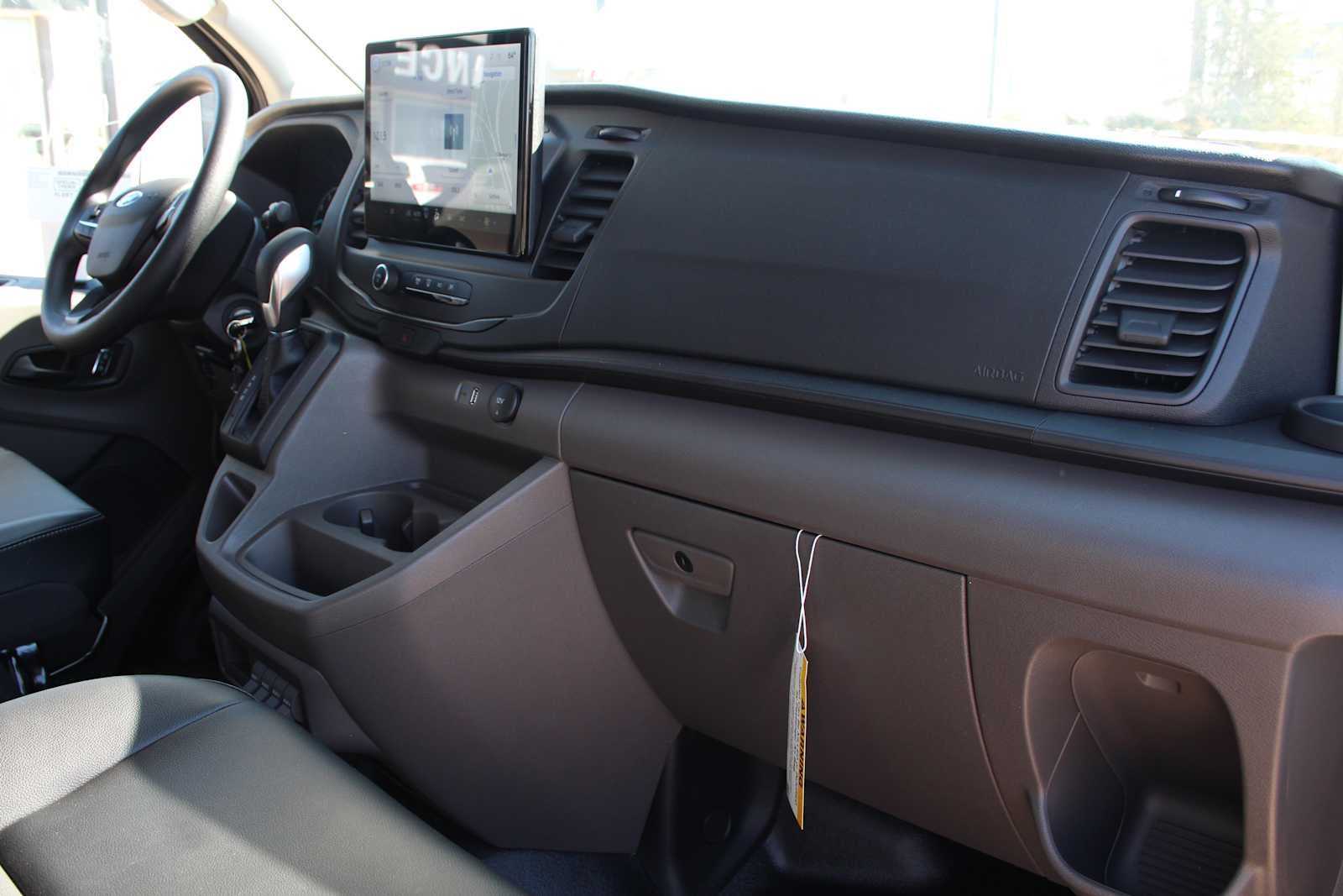 360-DEGREE CAMERA W/SPLIT VIEW front washer, Front, side and rear facing cameras allow the driver to toggle through different camera views via a button located on the instrument panel, Honeycomb Mesh Grille w/Chrome Surround, RADIO: AM/FM STEREO W/SYNC 4 12 multi-function display, Bluetooth®, dual USB ports, embedded voice recognition, connected navigation and 4 speakers (front), Electronic Air Temperature Control, DRIVER CONTROLLED FRONT/REAR AUX A/C & HEATER Heat is distributed from rear of front-passenger seat, A/C is distributed from the rear of van, EXTENDED LENGTH RUNNING BOARDS Covers the A-B pillar driver-side and A-C pillar passenger-side, BLIND SPOT ASSIST 1.0 Blind Spot Information System (BLIS) w/Cross-Traffic Alert and trailer coverage, Blind Spot Assist 1.0 combines Blind Spot Information System (BLIS) w/lane keeping aid to provide a visual warning and resistive steering torque to prevent a collision should an object be recognized in the vehicles blind spot while changing lanes, Short-Arm Pwr-Folding Heated Pwr Adjusting Mirrors, turn signals, REMOTE START, HEAVY-DUTY TRAILER TOW PACKAGE Deletes rear tow hook, 4/7 pin connector assembly and rear jumper and relay system for backup/B+/running lights, This package does not include a Trailer Brake Controller (TBC) (67D), Frame Mounted Hitch Receiver, Tow/Haul Mode w/Trailering Wiring Provisions, SIDE SENSING SYSTEM Works similar to the reverse sensing system, as it sounds a tone when the vehicle gets close to surrounding vehicles and other objects, Front Sensing System, Front Fog Lamps, Auxiliary lamps that are generally integrated into the front fascia and designed to help illuminate the roadway during poor visibility, FIXED REAR CARGO DOOR GLASS Rear-Window Defroster, Rearview Mirror, KEYLESS ENTRY KEYPAD, DARK PALAZZO GRAY VINYL BUCKET SEATS W/ARMRESTS 2-way manual driver seat and 2-way manual passenger seat, VEHICLE MAINTENANCE MONITOR engine hour meter, Depending on the engine, this feature will display engine hour meter, oil life, oil level and tire pressure status, TRANSMISSION: 10-SPD AUTOMATIC W/OD & SELECTSHIFT auxiliary transmission oil cooler (STD). Ford Transit Cargo Van with Agate Black exterior and Dark Palazzo Gray interior features a V6 Cylinder Engine with 275 HP at 6250 RPM*.