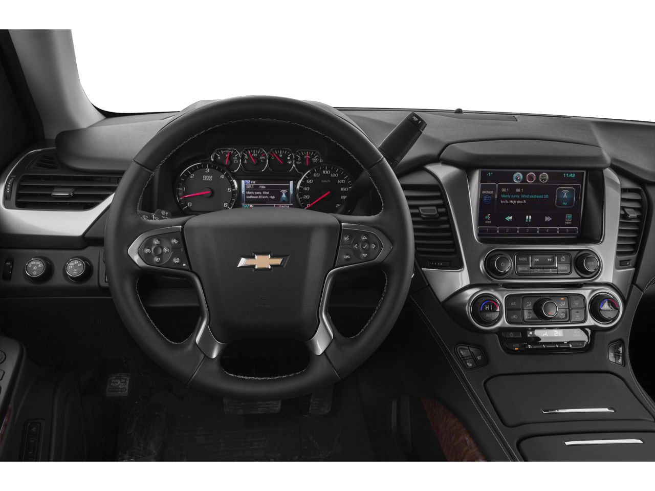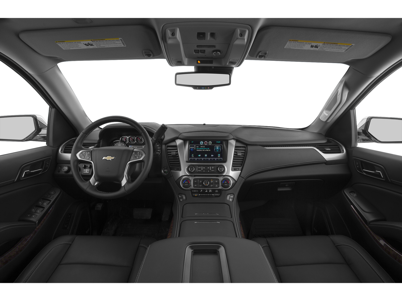 ADAPTIVE CRUISE CONTROL with Front Automatic Braking, sophisticated radar transceiver automatically adjusts speed to maintain preset following distance, ENTERTAINMENT SYSTEM, REAR SEAT, BLU-RAY/DVD with remote control, overhead display, two 2-channel wireless infrared headphones and auxiliary audio/video input jacks/SD and USB slots, WHEELS, 20 X 9 (50.8 CM X 22.9 CM) CHROME, SEATING, FRONT BUCKET WITH PERFORATED LEATHER-APPOINTED HEATED AND COOLED SEAT CUSHIONS 12-way power driver and passenger seat includes 6-way power cushions, driver seat 2-position memory, 4-way power lumbar control and power recline (STD), AUDIO SYSTEM, CHEVROLET MYLINK RADIO WITH NAVIGATION, AM/FM STEREO AND CD PLAYER 5 USB ports, 1 SD card reader and an auxiliary jack (STD), ENGINE, 5.3L ECOTEC3 V8 WITH ACTIVE FUEL MANAGEMENT, DIRECT INJECTION AND VARIABLE VALVE TIMING includes aluminum block construction (355 hp [265 kW] @ 5600 rpm, 383 lb-ft of torque [518 N-m] @ 4100 rpm) (STD), TRANSMISSION, 6-SPEED AUTOMATIC, ELECTRONICALLY CONTROLLED with overdrive and tow/haul mode (STD). Chevrolet LTZ with White Diamond Tricoat exterior and Cocoa/Dune interior features a 8 Cylinder Engine with 355 HP at 5600 RPM*.