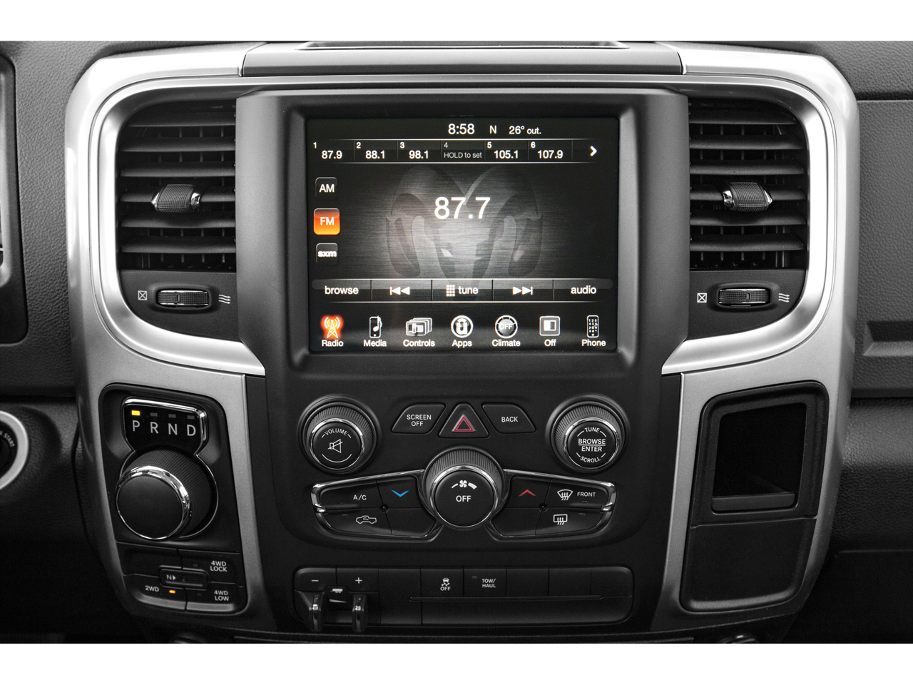 QUICK ORDER PACKAGE 26T OUTDOORSMAN Engine: 5.7L V8 HEMI MDS VVT, Transmission: 8-Speed Automatic 8HP70, Black Door Handles, Outdoorsman Badging, SIRIUSXM Satellite Radio, No satellite coverage in Hawaii or Alaska, (Reg, Required), Media Hub (SD, USB, AUX), For Details Go To DriveUconnect.com, (Registration Required), Remote SD Card Slot, Harman Radio Manufacturer, Uconnect Access, 8.4 Touchscreen Display, Nav-Capable! See Dealer for Details, Accent Fender Flares, Outdoorsman Group, Tow Hooks, Body Color Grille, WHEELS: 20 X 8 SEMI-GLOSS BLACK ALUMINUM Locking Lug Nuts, Semi-Gloss Black Hub, Full Size Temporary Use Spare Tire, Tires: P275/60R20 BSW AS, ENGINE: 5.7L V8 HEMI MDS VVT Electronically Controlled Throttle, Heavy Duty Engine Cooling, GVWR: 6,900 lbs, Next Generation Engine Controller, Hemi Badge, Heavy Duty Transmission Oil Cooler, REAR CAMERA & PARK ASSIST GROUP ParkView Rear Back-Up Camera, ParkSense Front/Rear Park Assist System, TRANSMISSION: 8-SPEED AUTOMATIC 8HP70, ANTI-SPIN DIFFERENTIAL REAR AXLE.