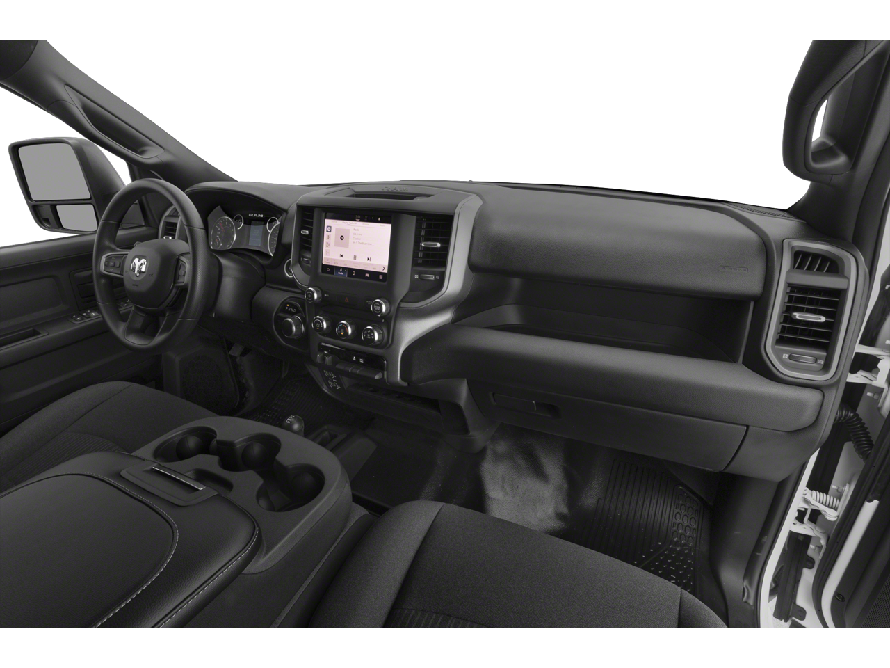 TRADESMAN LEVEL 2 EQUIPMENT GROUP SiriusXM Satellite Radio, Rear Window Defroster, Power Heated Folding Telescope Mirrors, For More Info, Call 800-643-2112, Rear Power Sliding Window, Exterior Mirrors w/Supplemental Signals, Exterior Mirrors Courtesy Lamps, Front Armrest w/Cupholders, Exterior Mirrors w/Heating Element, Manual Adjust 4-Way Front Passenger Seat, Mirror Running Lights, Power Adjust Mirrors, Power Adjustable Convex Aux Mirrors, CHROME APPEARANCE GROUP Bright Rear Bumper, Chrome Grille Surround, Matte Black Mesh Grille w/Chrome, Chrome Headlamp Bezels, 18 Steel Spare Wheel, Wheels: 18 x 8.0 Steel Chrome Clad, Tires: LT275/70R18E BSW AS, Bright Front Bumper, ANTI-SPIN DIFFERENTIAL REAR AXLE, PARKSENSE REAR PARK ASSIST SYSTEM, POWER HEATED FOLD TELESCOPE MIRRORS Exterior Mirrors w/Heating Element, Forward & Reverse Utility Lights, Mirror Running Lights, Exterior Mirrors w/Supplemental Signals, Power Adjust Mirrors, Exterior Mirrors Courtesy Lamps, Power Telescoping Mirrors, Auto Power-Folding Mirrors, Power Adjustable Convex Aux Mirrors, PROTECTION GROUP Transfer Case Skid Plate Shield, Tow Hooks, TRANSMISSION: 8-SPEED AUTO (8HP75-LCV) (STD), ENGINE: 6.4L V8 HEAVY DUTY HEMI MDS (STD), BLACK, CLOTH 40/20/40 BENCH SEAT.