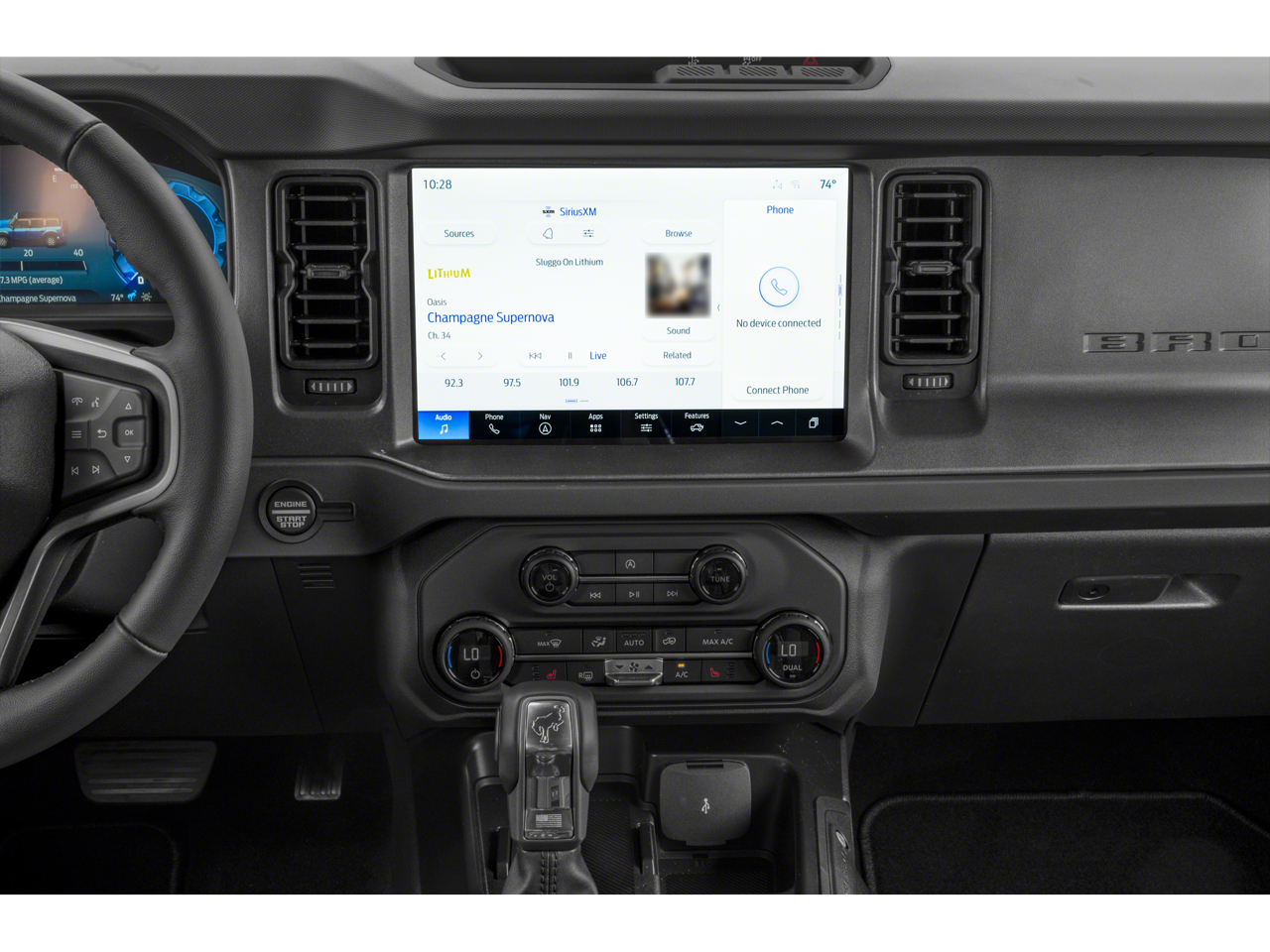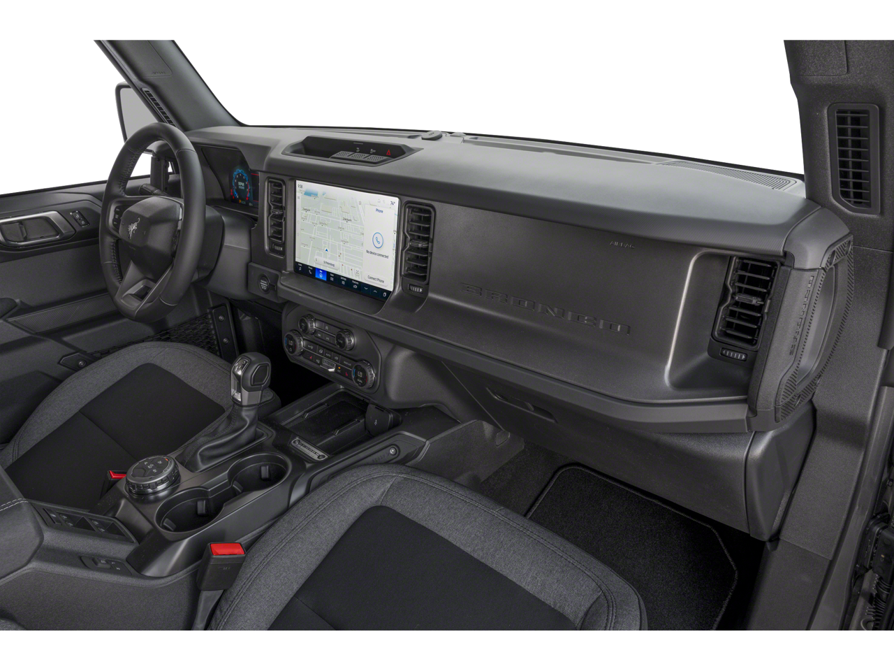 SHADOW BLACK PAINTED HARD TOP Hard Top Sound Deadening Headliner, Rear-Window Defroster & Washer, TRANSMISSION: 10-SPEED AUTOMATIC trail control and trail turn assist, 3.73 Axle Ratio, Rear HVAC, EQUIPMENT GROUP 222A MID PACKAGE: Rear Parking Sensors, Power Outlet - Back Side of Center Floor Console, Dual Smart Charging USB Ports, Front Row Heated Seats, Dr & Pass Illuminated Sliding Visor Vanity Mirrors, Dual-Zone Electronic Automatic Temperature Control, air conditioning, Ford Co-Pilot360, Enables compatibility w/FordPass performance app w/off-road navigation, Auto High-Beam Headlamps, Pre-Collision Assist w/Automatic Emergency Braking, pedestrian detection, forward collision warning and dynamic brake support, Blind Spot Information System (BLIS), Cross-Traffic Alert, Rear View Camera, backup assist grid lines, Lane-Keeping System, Lane-Keeping Alert, Lane-Keeping Aid and Driver Alert, Connected Navigation, pinch-to-zoom capability, live traffic, predictive destinations and route, BLACK APPEARANCE PACKAGE: black appearance graphics package, Black-Painted Molded-In-Color Grille, white BRONCO lettering, Black Molded-In-Color Fender Flares, Black Molded-In-Color Sideview Mirror Caps, Black Molded-In-Color Door Handles, MARSH GRAY.